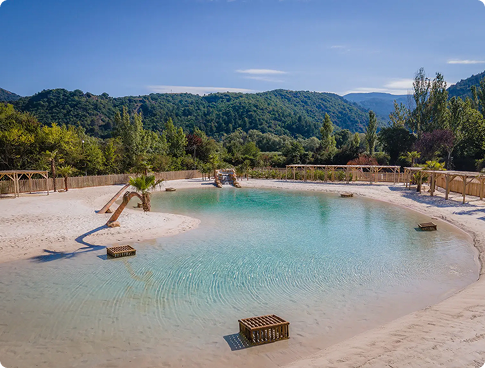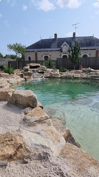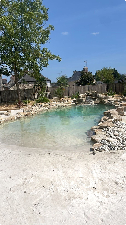 Gracias a nuestro saber hacer artesanal, puedes personalizar completamente tu espacio acuático: forma, dimensiones, profundidad, arena, rocas y entorno paisajístico. Cada laguna está pensada para integrarse armoniosamente en su entorno y crear un auténtico oasis natural.